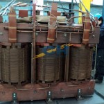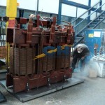 - Lavamos y limpiamos con solvente dialéctrico y aceite las partes en actividad del transformador rectificador (bobinados y núcleo), a 60ºC.