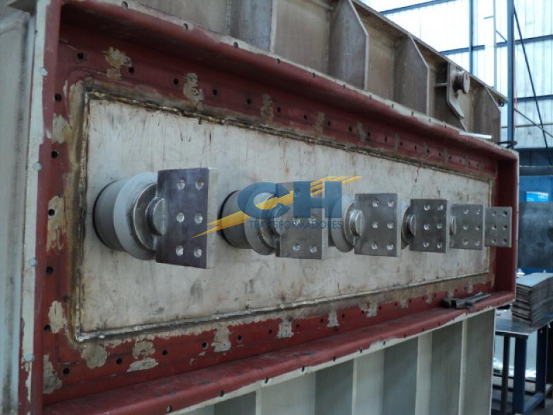 - Modificamos la estructura superior del rector, para así poder realizar el anclaje con pletina inoxidable al estanque del transformador en dos puntos que añadimos, de este modo evitamos la inestabilidad a la hora de transportarlo.