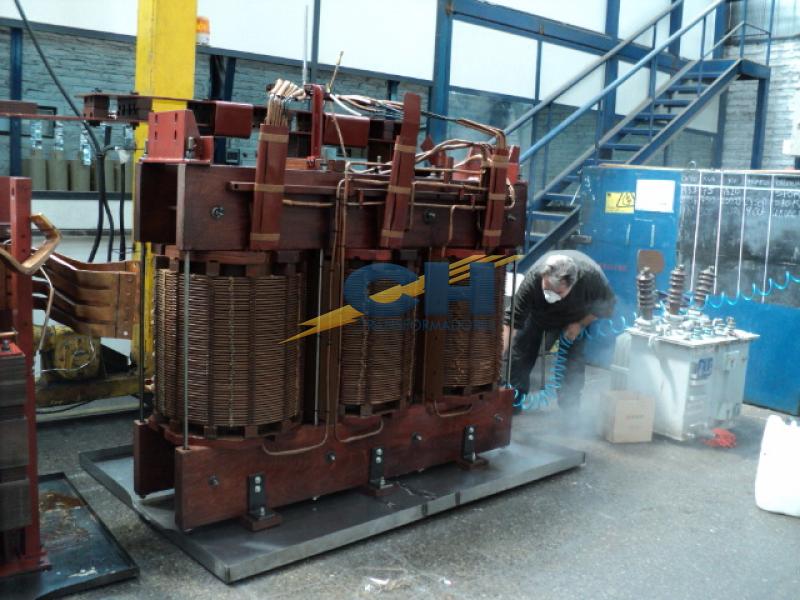 - Lavamos y limpiamos con solvente dialéctrico y aceite las partes en actividad del transformador rectificador (bobinados y núcleo), a 60ºC.