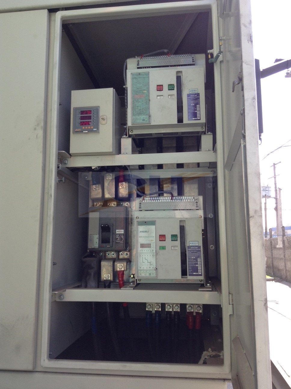 El compartimiento de la derecha del operador corresponde a la celda de baja tensión y su puerta está dotada de una manilla accionable desde el exterior con una llave. Esta puerta bloquea el compartimiento de media tensión y el techo, los cuales además poseen cerradura, accesible solamente desde el interior. Además la celda MT posee un letrero de peligro de alta y baja tensión adosados en su exterior.