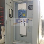 Celda tipo intemperie (IP65) construida en plancha de acero A37-24 de 2,5 mm. En su interior incorpora un desconectador fusible en SF6 clase 24 kV para operar bajo carga. Posee barras de entrada y salida para conexión de mufas con terminal plano, conectores a tierra de exterior e interior. El mecanismo de operación es independiente del operador, abriendo automáticamente si alguno de los fusibles actúa. La celda de media tensión está equipada con contactos auxiliares, 2 NA / 2 NC y bobina de apertura (disparo) en 220 Vca. El diseño robusto y de alta seguridad impide la conexión a puesta a tierra sin haber abierto (des-energizado) el seccionador principal. La puerta interior de acceso a los fusibles, tiene un enclavamiento que impide su acceso si el equipo se encuentra cerrado (energizado). Además incorpora un calefactor de 120 Watt operado por un termostato. Las puertas de exterior e interior, tienen mirilla en vidrio templado de seguridad para una inspección visual. El interior de la celda de media tensión se ilumina con una lámpara tipo tortuga y 3 leds indicadores de tensión en la conexión de salida. La entrada y salida de los cables es por su zócalo inferior a través de tapas metálicas perforables, para la instalación de prensa-estopas y así asegurar su hermeticidad. Se le realizan en nuestro laboratorio, ensayos de tensión aplicada, resitencia y simultaneidad de contactos, emitiendo un certificado de pruebas y garantía de 30 meses.