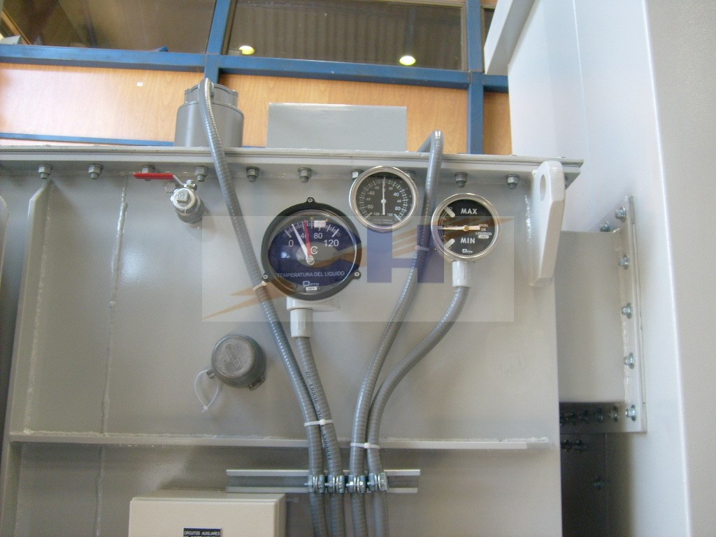 - Termómetro tipo dial para medir temperaturas actual y máxima del aceite, con contactos 2 N.A. y 2 N.C.
